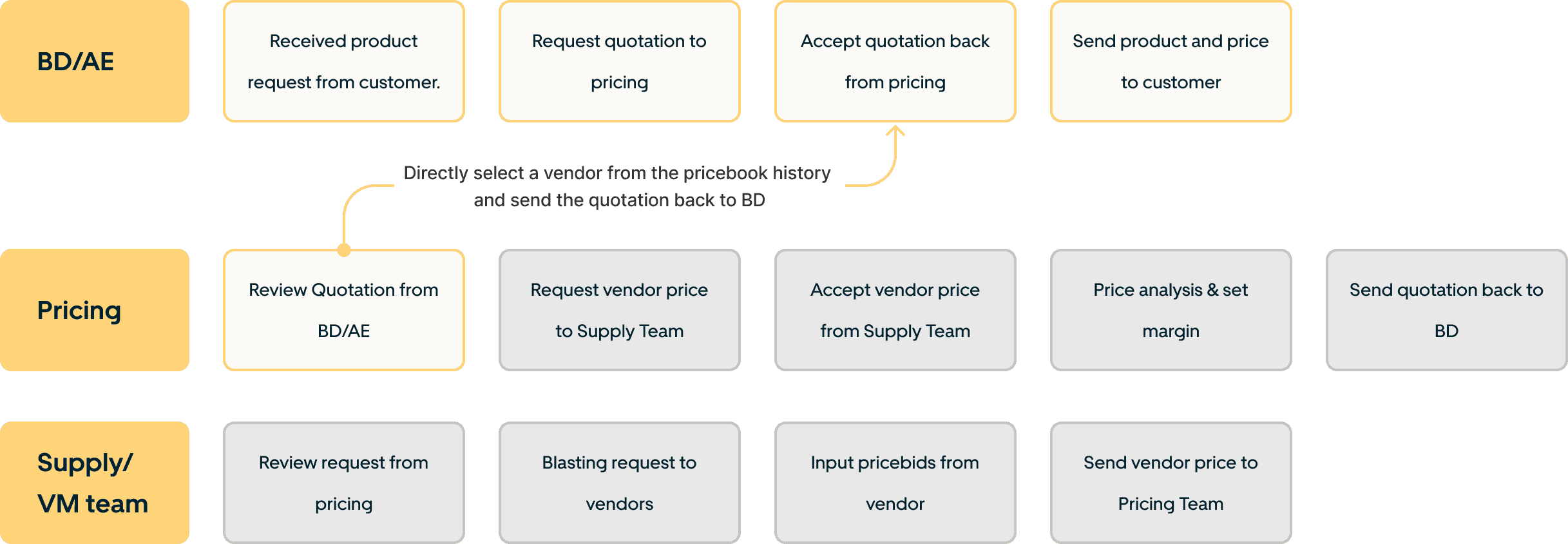 Actually, pricing also can do price analysis when reviewing quotation, but it can't because mismatch between product in the quotation and historical data (pricebook). That makes user always request new vendor price to supply team. Moreover, the user must choose the appropriate vendor price to set the margin. This process takes time and has the potential for BD to lose customers.