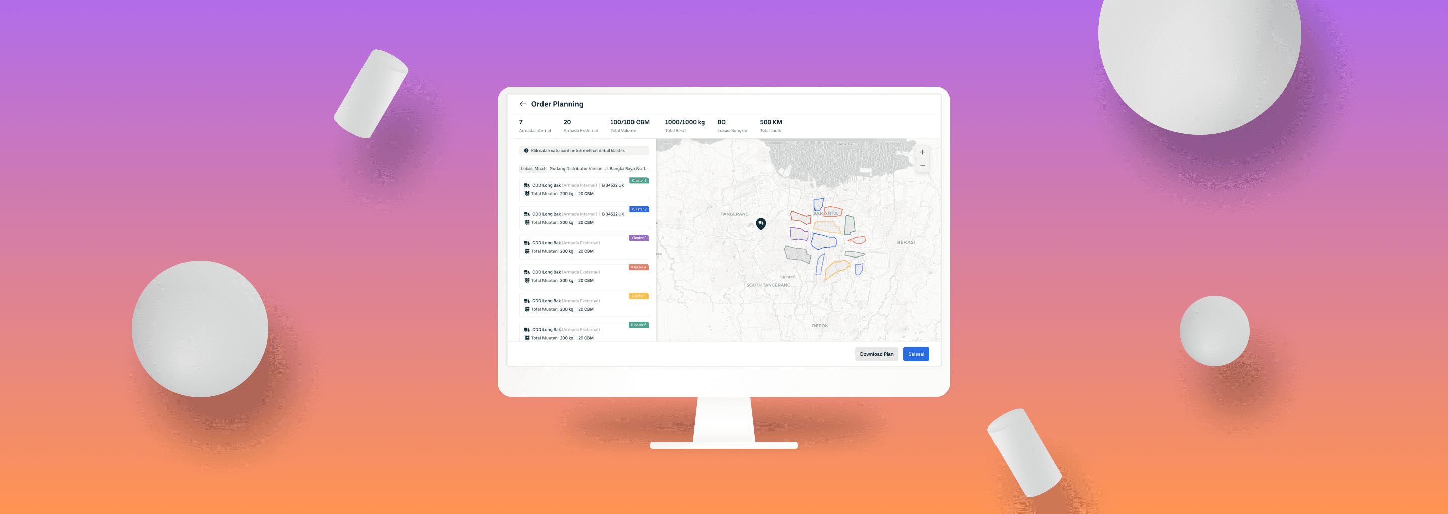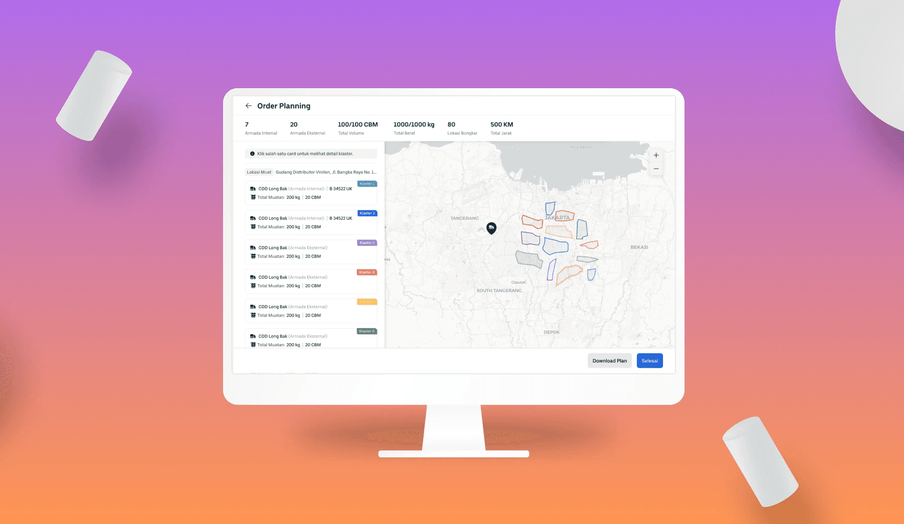 ‘Armada Internal’ and ‘Armada Eksternal’ information to determine when to use internal trucks and vendor’s trucks.