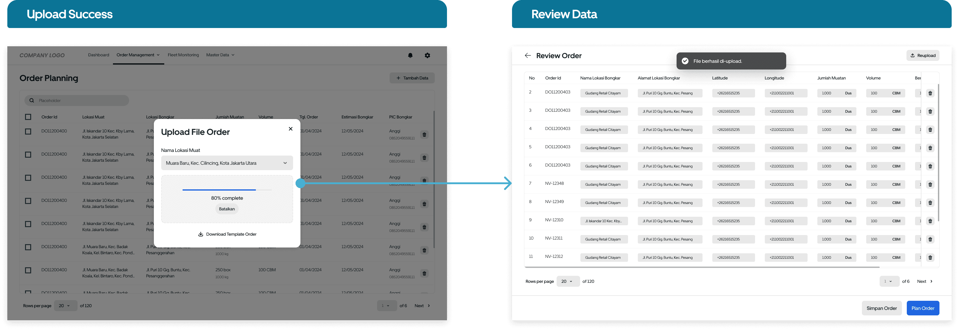 Users can check and/or modify data that uploaded into the system before start planning activity. We also provide options whether the user wants to continue the plan or save data. Anytime new data incoming, users can resume planning accordingly.